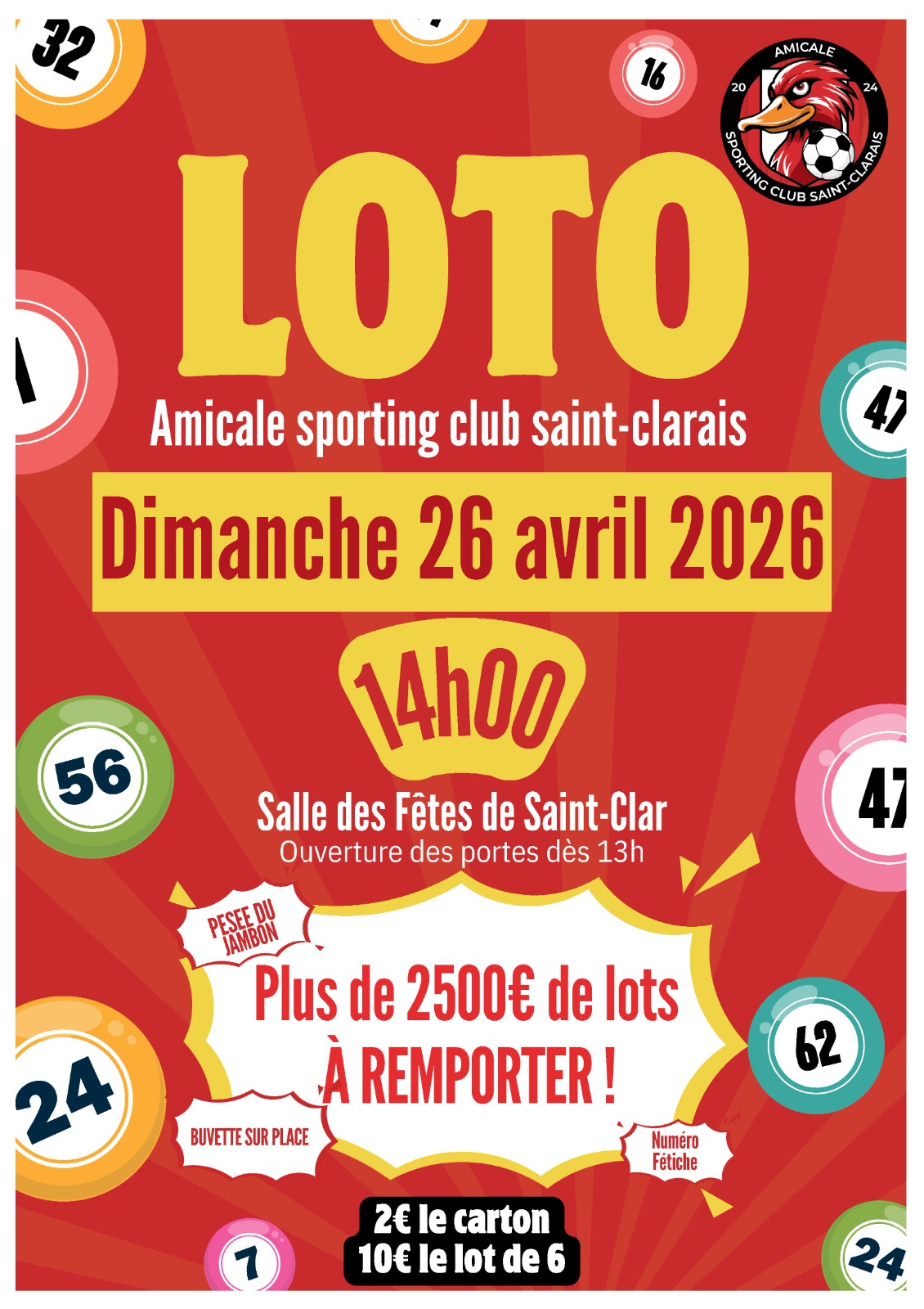 Au-delà du jeu, ce loto est l’occasion de soutenir les actions menées par l’Amicale du Sporting Club Saint-Clarais et de contribuer à la vitalité associative du territoire.